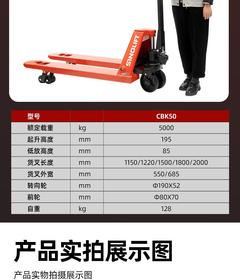 名称:CBK50 CBK80 CBK100 系列重载式手动搬运车